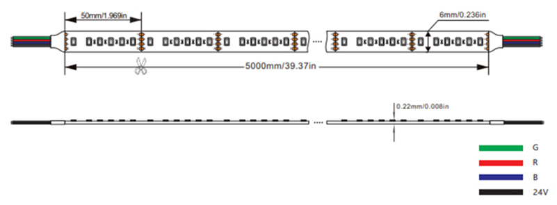 6mm 宽 2835 RGB 柔性 LED 灯条 120LEDs/m DC24V
