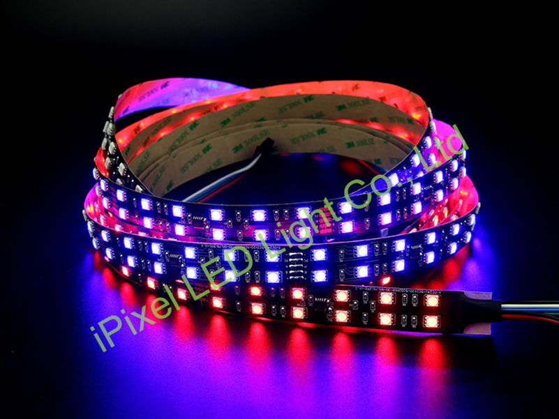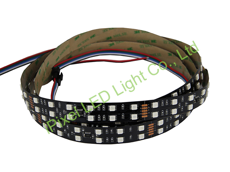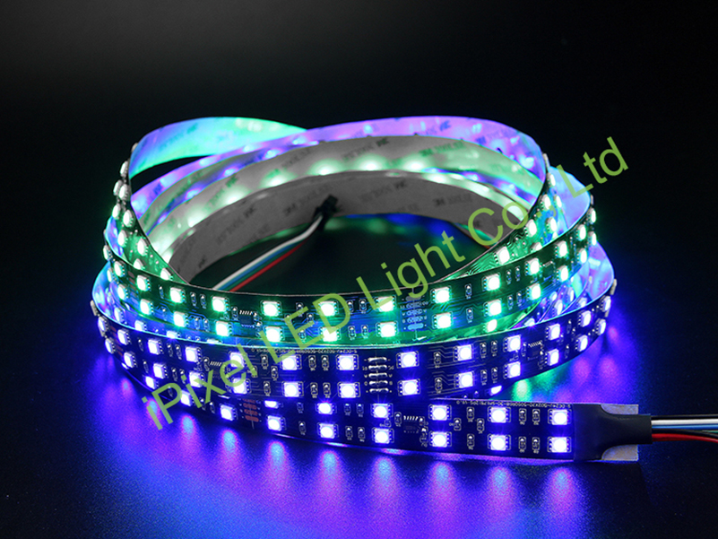 DMX512 96 灯/m双排LED灯条本产品是由公海jcjc5500的德国客户定制的96LED/m DMX512双排LED灯条 产品型号:S020096CC3DC6 96pcs SMD5050RGB LED,直流24V 每米8像素,24通道 黑色PCB,PCB尺寸:5000*20mm,不防水IP20