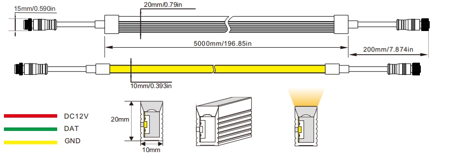 4.常规霓虹灯条长度大于5米到15米需要两端供电;
