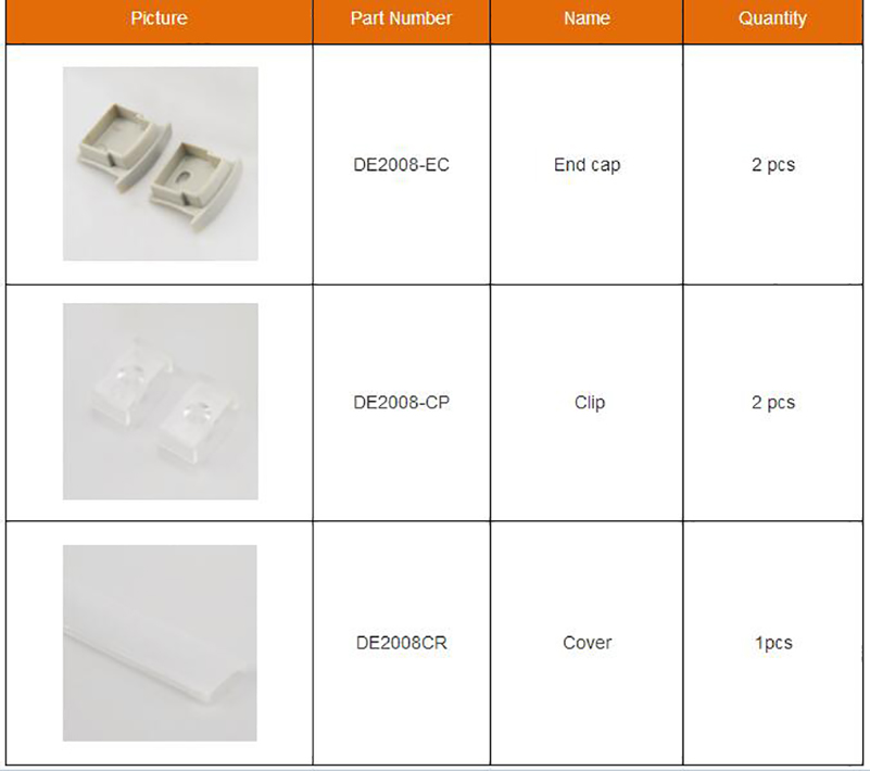 首页 > 配件 > 硬灯条 >    DE2008 铝合金 LED 型材